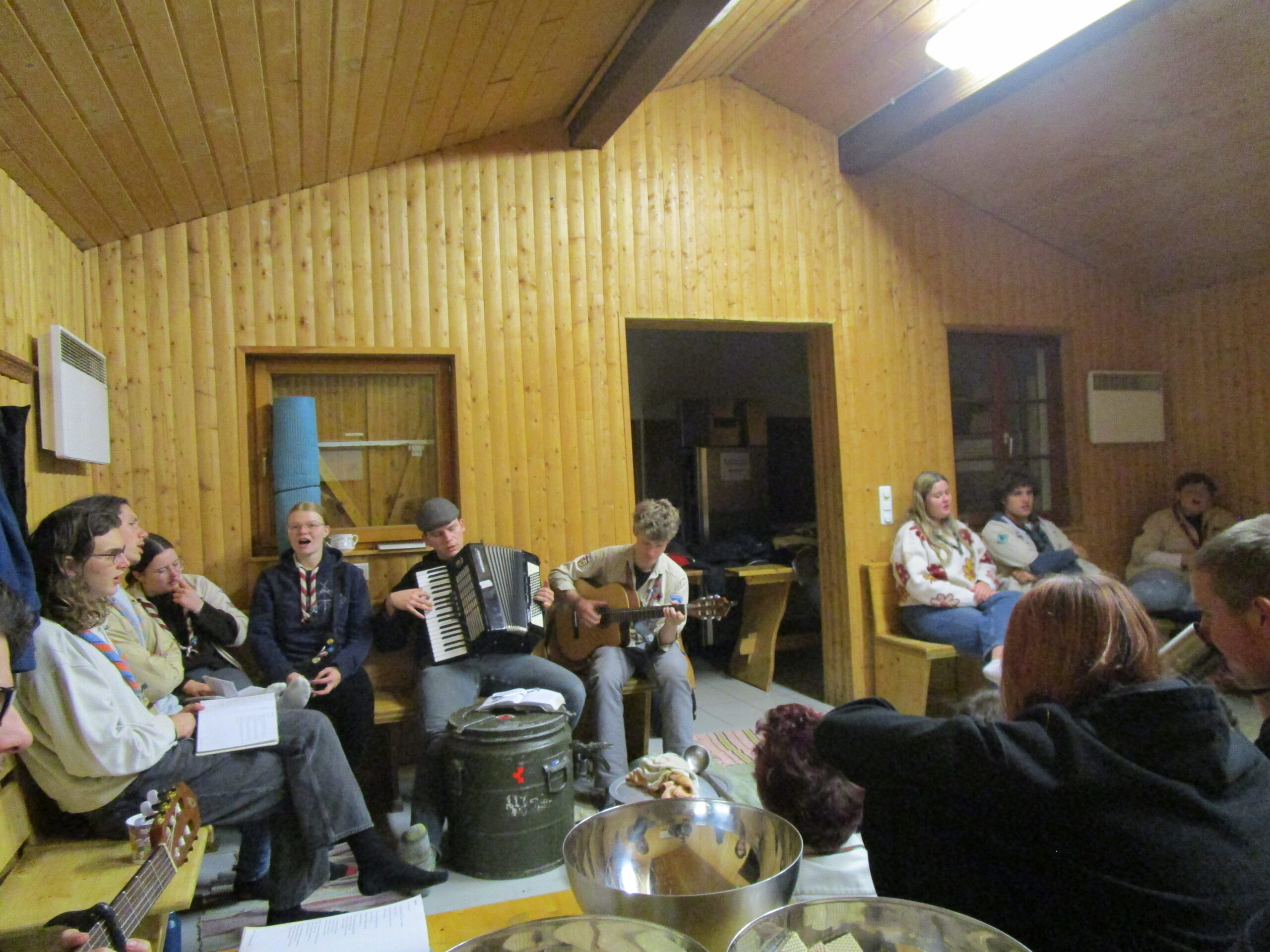 Völlig geschafft freuten wir uns alle über das Abendessen, mit dem erfreulichere Gespräche einhergingen. Das indische Gericht erhellte die Stimmung maßgeblich. Genauso wie die darauffolgende Liederrunde in der wenige Meter entfernten Grillhütte der Treverer. Bis spät in die Nacht trällerten wir die Gitarren und sangen die alt bekannten Lieder.